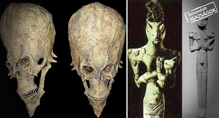 Természetesen nem ez lenne az egyetlen nyoma az idegeneknek, hiszen a mai populációból is kimutatható számos esetben az idegen gén. Na, és az Atacama sivatag koponyái sem emberiek. A mellékelt képen nem lehet a "rekonstruált" koponya a koponyacsonttal azonos lényé, mert ferde szemmel néz a szobor.