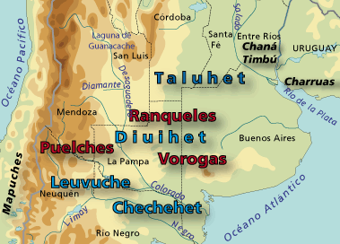 Mapche nyelven kerestük a szó eredetét. At the time of Spanish arrival the Araucanian Mapuche inhabited the valleys between the Itata and Toltén rivers. Mapuche groups migrated eastward into the Andes and pampas, fusing and stablishing relationships with the Poya and Pehuenche.