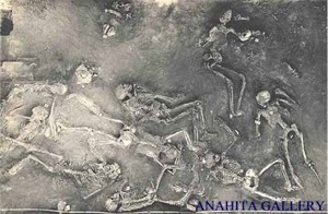 Amikor Mohenjo Daro és Harappa feltárása az utca szintjéig ért, számos temetetlen csontvázat találtak az utcán elterülve, mint akiket a végítélet elért...A csontok között volt, amelynek a sugárzása a normális 50-szeresét meghaladta. Volt olyan Indus város (Rajmahal), ahol a város falának téglái összeolvadtak a nagy hőtől. A csontvázak C14-es vizsgálata BC 2500-at mutat, ami BC 3000- BC 2000 közé eső hibahatáron belül van valahol.